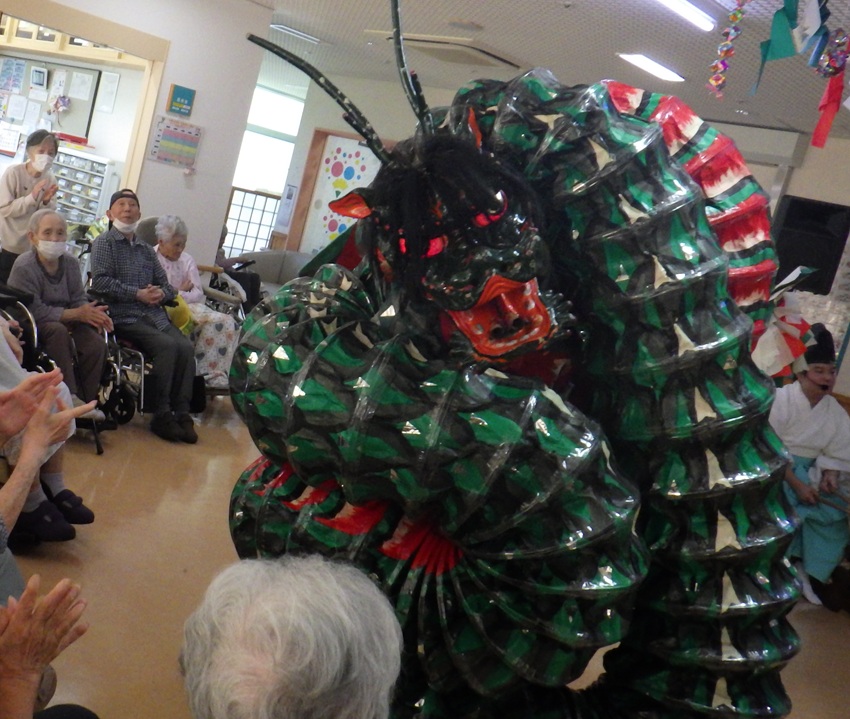 「加藤清正」は堂々たる加藤清正の出で立ちと、舞台上を所狭しと躍動する虎のぶつかり合い、明軍との決戦など、見どころ満載の演目であり、ご利用者皆さんとても喜ばれていました。