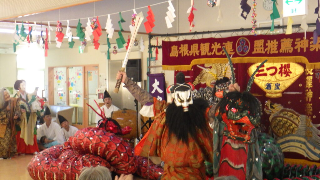 10月11日(土)に石見神楽長澤社中の皆さんをお招きし、「加藤清正」「大蛇」の2演目を上演していただきました。