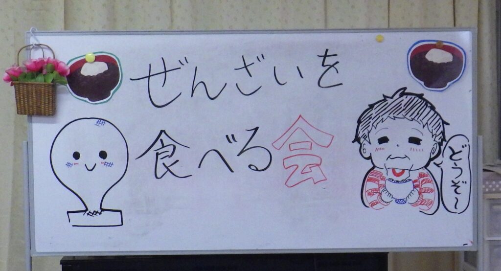 手作りの団子を入れたぜんざいは格別の味わいで、皆さん美味しそうに笑顔で召し上がっておられました。
