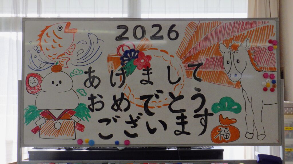 謹賀新年新年あけましておめでとうございます。昨年は、入居者の皆さまやご家族の皆さまにたくさん支えていただき、本当にありがとうございました。今年も、皆さまが安心してのんびり過ごせるよう、職員みんなで力を合わせてがんばっていきます。そして午年の今年、皆さまの一年が“うま〜く”いきますように。本年もどうぞよろしくお願いいたします。