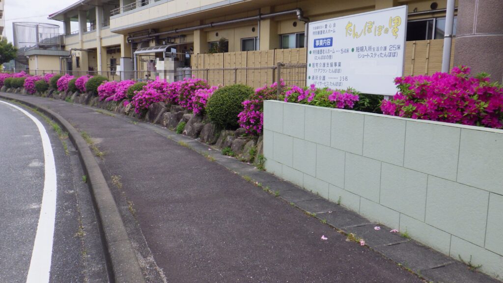 春風駘蕩(しゅんぷうたいとう)今年は例年よりも早く、施設敷地内のつつじが鮮やかに咲き始めました。暖かな陽射しに包まれながら、ご利用者の皆さんと一緒に、満開のつつじを眺めて季節の移ろいを感じました。「きれいだね」「もうこんな時期になったんだね」といった声も聞かれ、皆さん自然と笑顔に。赤とピンクの花々が、穏やかなひとときを演出してくれました。これからも、季節を感じられる時間を大切にしながら、日々の生活に小さな楽しみをお届けしてまいります。